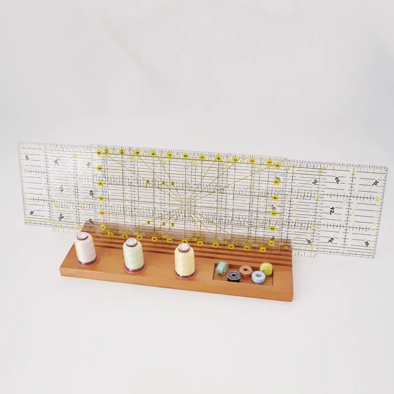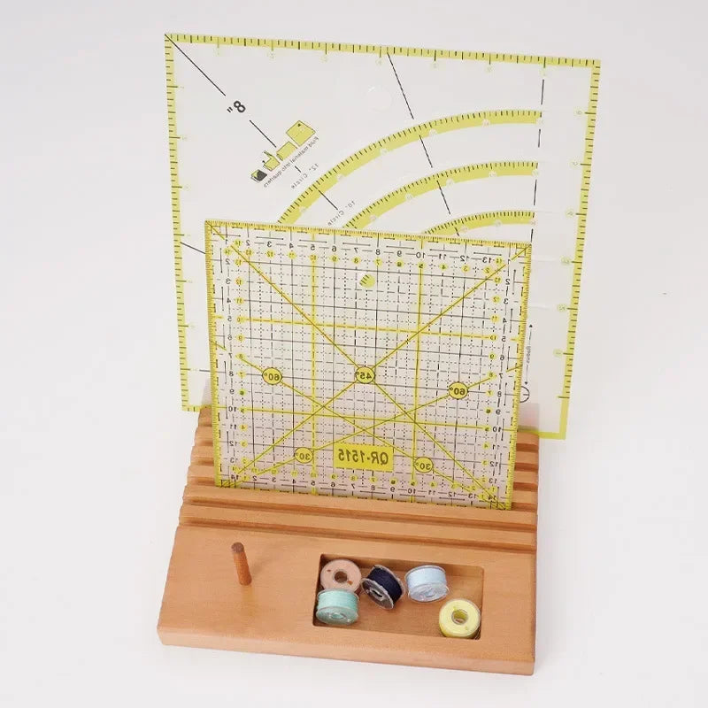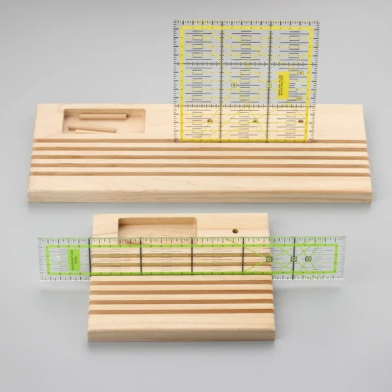 Minimalist wooden quilting tool with built-in storage for organized sewing