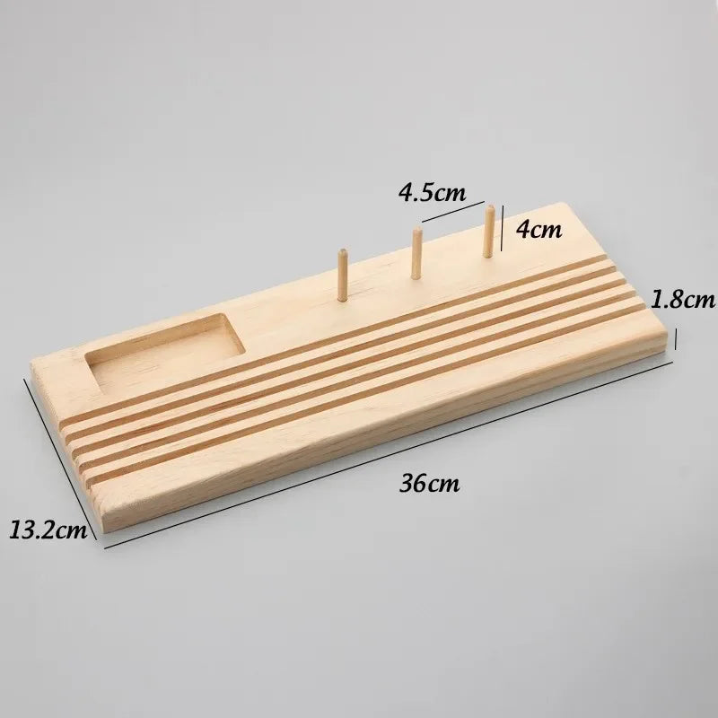 CraftWood is a multifunctional DIY sewing accessory that combines a wooden frame, patchwork ruler, and spindle-style storage in one neat unit. Crafted from smooth, natural wood, it helps quilters measure accurately while keeping threads or small tools organized on its spindles. Its simple and functional design makes it a perfect addition to any sewing table or craft room.
