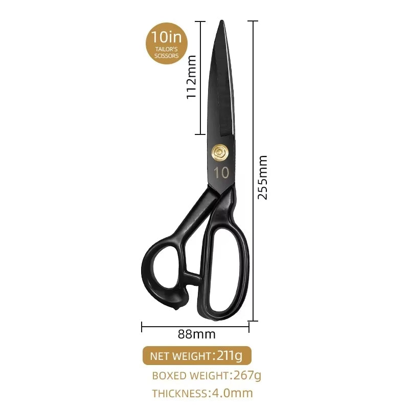 CutMaster is a pair of professional tailor scissors crafted from premium manganese steel for exceptional sharpness and durability. Designed with a vintage aesthetic, they glide effortlessly through fabric, leather, and other materials, making them ideal for sewing, tailoring, and crafting. The ergonomic handle ensures comfort during extended use.