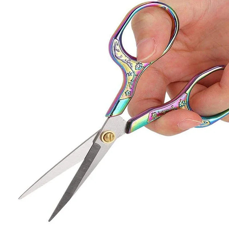 The handles are adorned with elegant carved details, blending functionality with vintage aesthetics. These unique patterns make the scissors a perfect addition to your collection of sewing tools or stationery, adding a decorative yet practical touch.