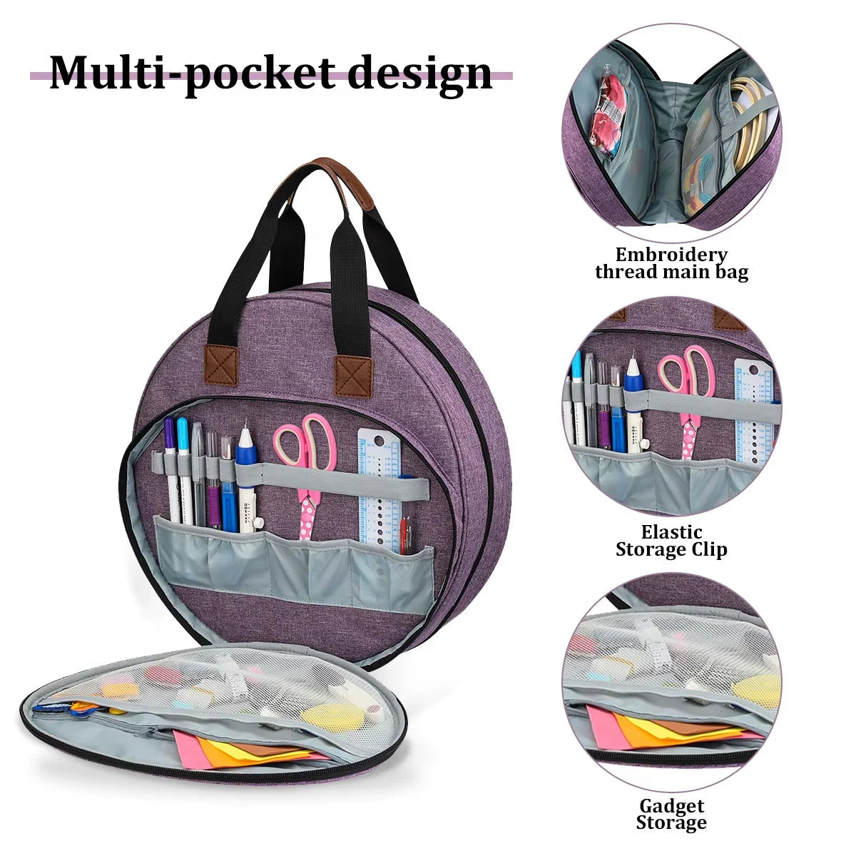 Keep your embroidery essentials beautifully organized with Leafora, the round maple leaf–inspired tote designed for creativity and convenience. Its spacious interior and elegant design make it the perfect companion for embroidery, knitting, and sewing projects.
