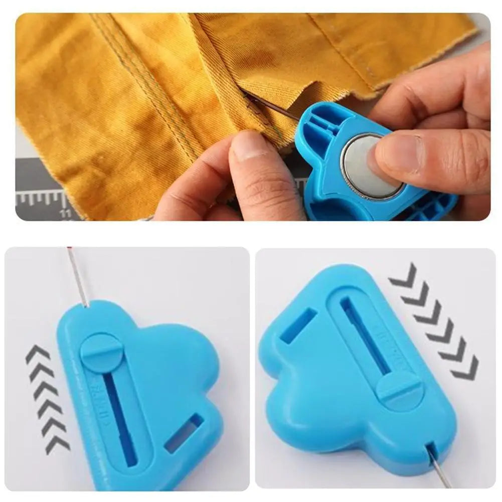 Versatile magnetic sewing tool with built-in ruler and precision blade for clean, accurate stitching