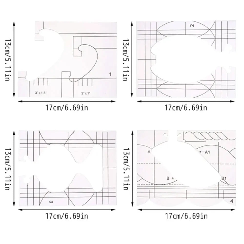Essential stencil and ruler set for accurate quilting, sewing, and apparel design